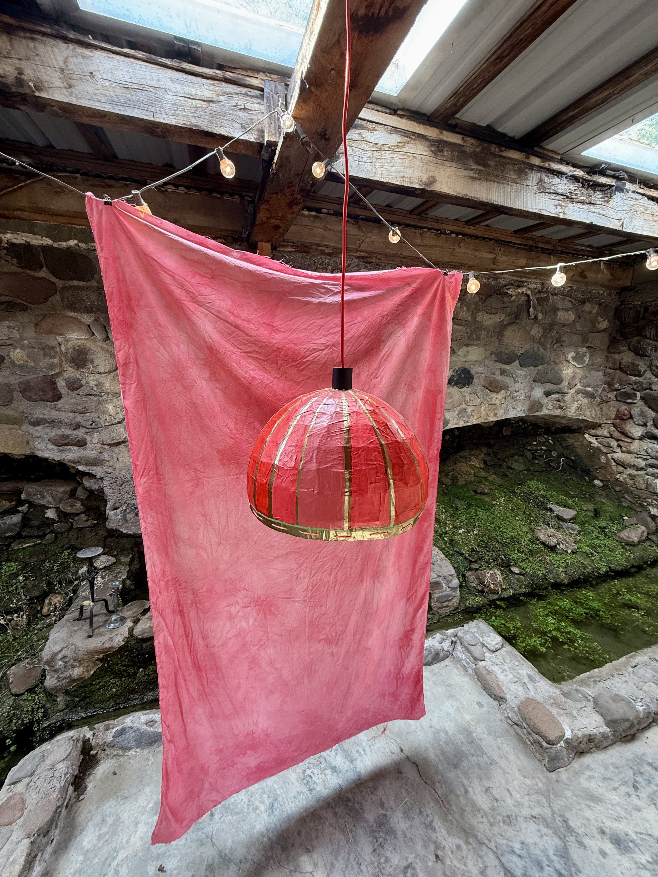 The foundation of each light begins with the traditional craft of paper machè. Layer upon layer of recycled paper and glue are assembled over forms in a time consuming process that takes months. The lights are then hand painted or coated in fabrics, cords and trims, sometimes finished with patinas, glazes and pigment. These lights are inspired by various quests Potter chooses to take. Whether it be the paper machè mask making of China, the patterns of the Dogone people or the epic fashion portfolio of Vivienne Westwood. Potter aims to educate, explore and express her quest discoveries in each of these pieces. Every light is its own “work of art” numbered and signed. No two are ever alike. So mix and match, pick a conversation piece, or simply select a light that illuminates your world.